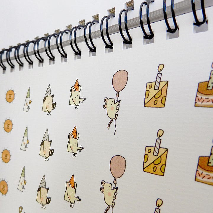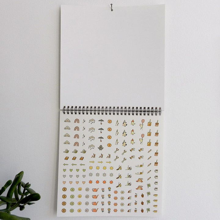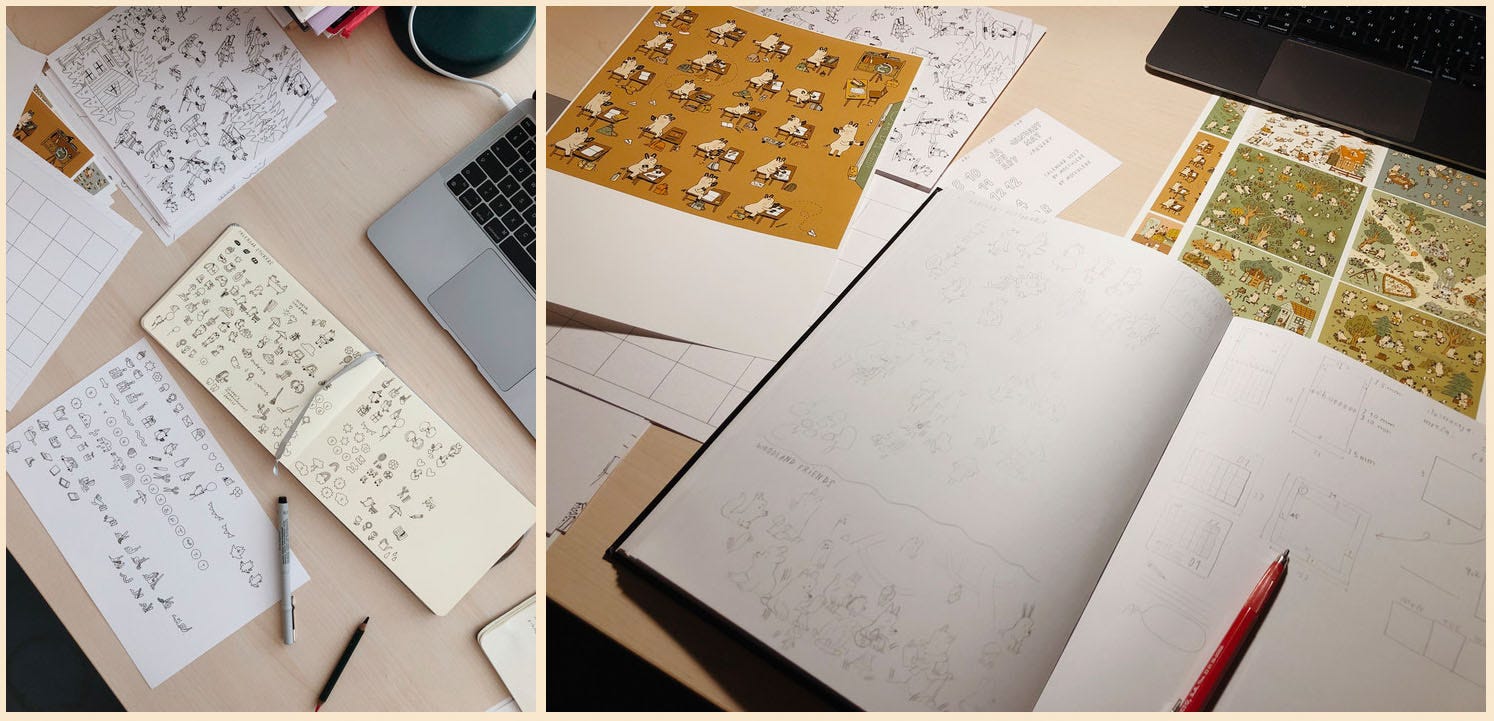 The project required some preparations and lots of tiny doodles. I also had to meet with my long forgotten acquaintance Adobe Illustrator, who helped me prepare the big sticker sheet for printing. This time I outsourced the printing to get the best quality product as well a save some time cutting and handling the paper.