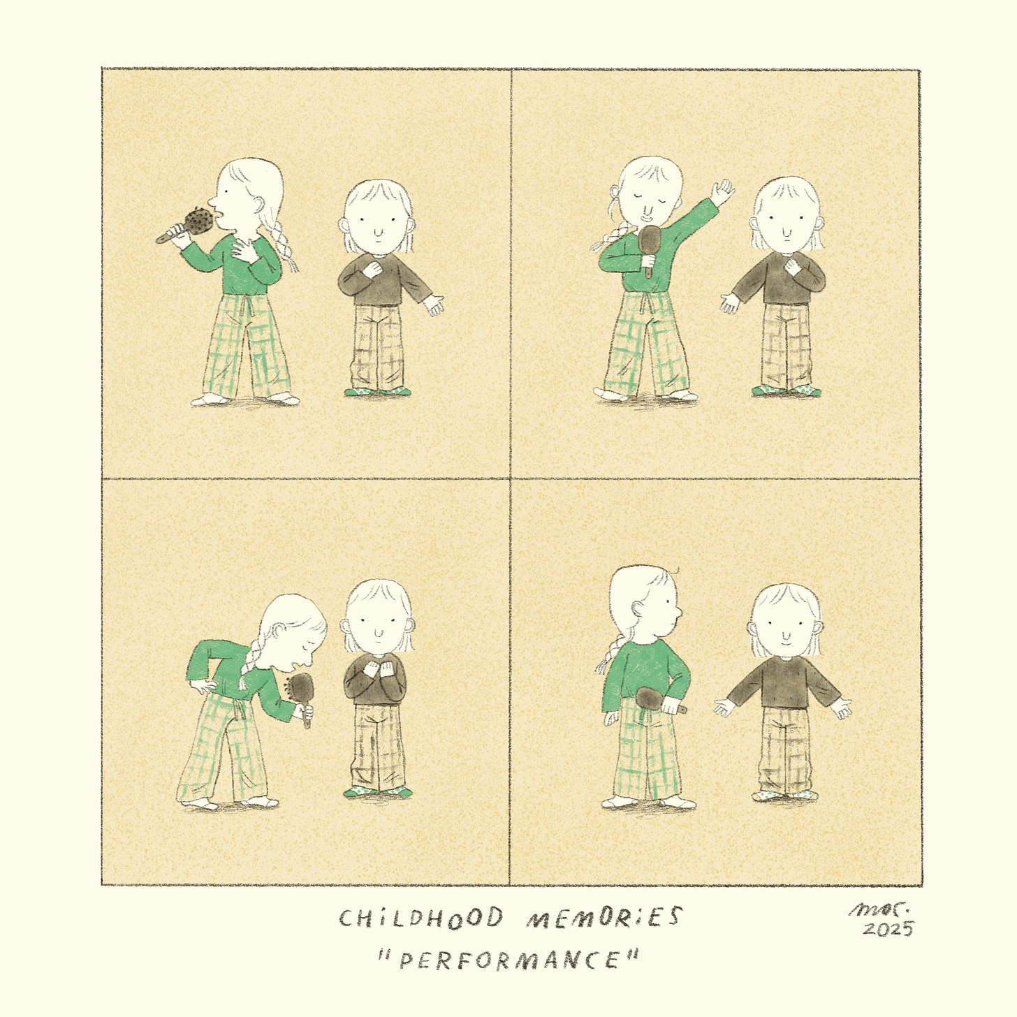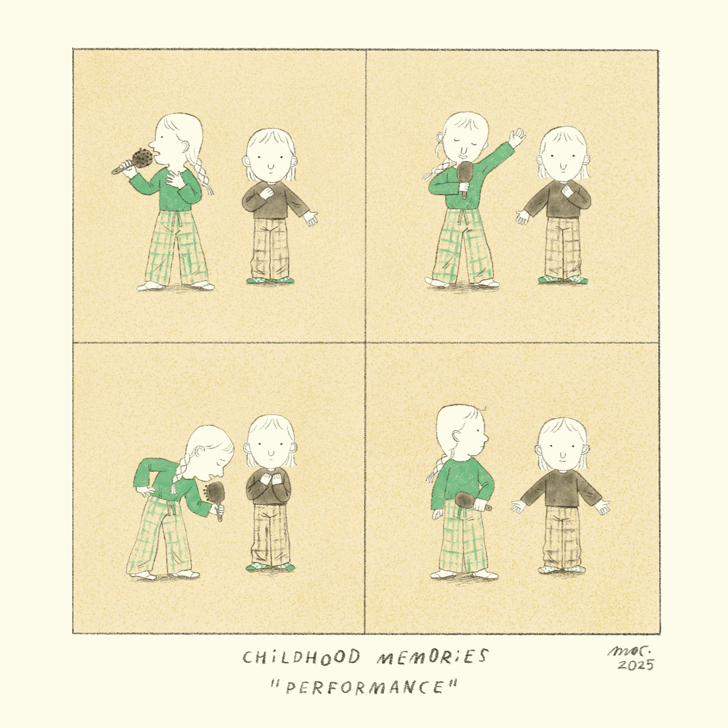 Dancing in front of a camera made my body stiff. Even if it was a private performance me and my sister put on while no one was watching. The choreography was noticeably stiff too. But terribly contagious. I was supposed to be a back-up singer, but all I managed to do was a rigid back-up dance my sister didn’t ask for. The choreography was very simple so it might have looked like I didn’t take our performance seriously. I took it very, very seriously, though. I know that because every time we watch the tape with my family, I re-live the moment.